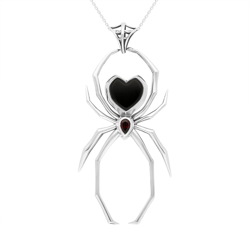 Sterling Silver Whitby Jet Garnet Spider Pendant Necklace