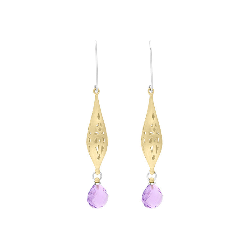 Sterling Silver Gold Plated Amethyst Drop Earrings D