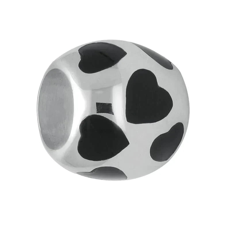 Sterling Silver Whitby Jet Barrel Hearts Charm. G500.