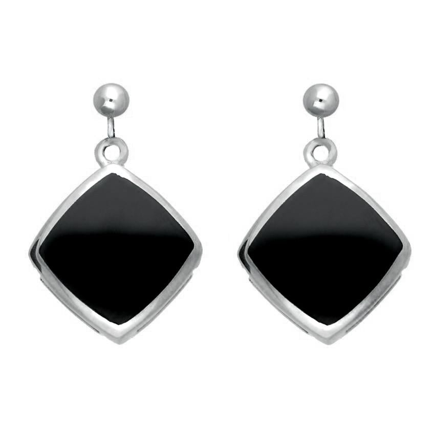 Sterling Silver Whitby Jet Cushion Square Drop Earrings, E1035