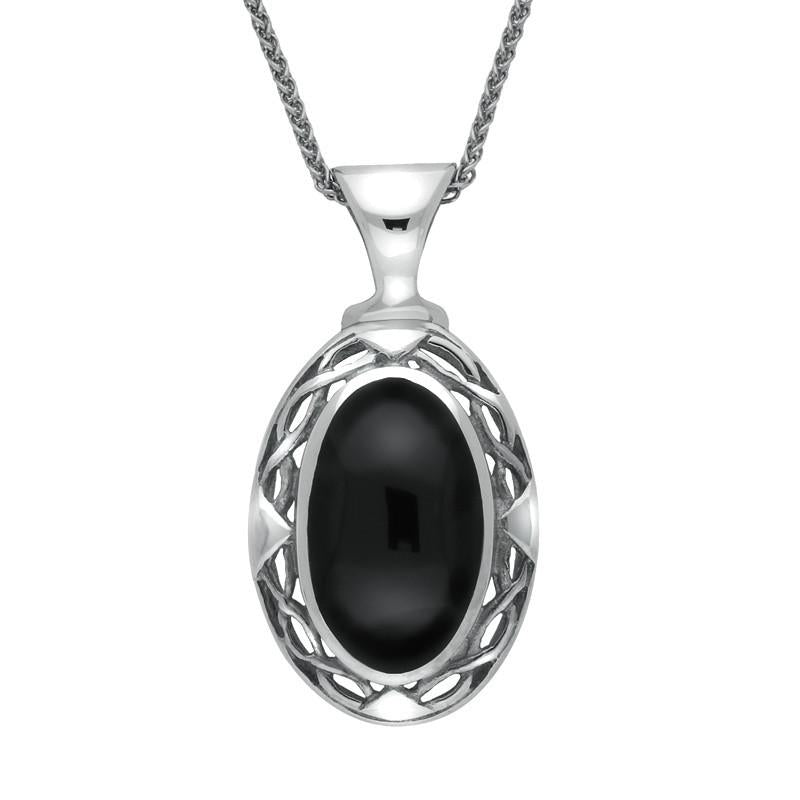 Sterling Silver Whitby Jet Oval Celtic Necklace, P247.