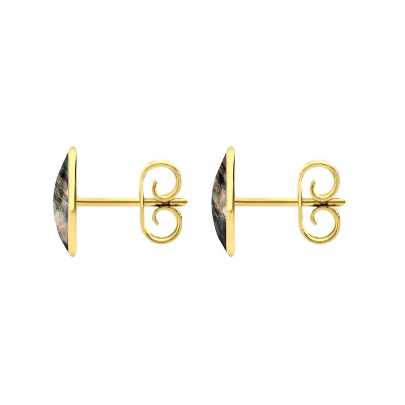 9ct Yellow Gold Dark Mother of Pearl 8 x 10mm Classic Large Oval Stud Earrings, E007.