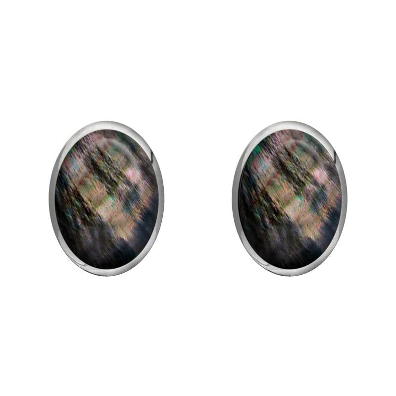 Sterling Silver Dark Mother of Pearl 8 x 6mm Classic Medium Oval Stud Earrings, E006