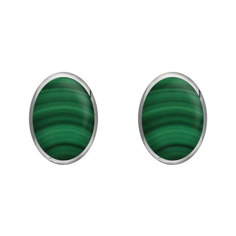 Sterling Silver Malachite 8 x 6mm Classic Medium Oval Stud Earrings, E006