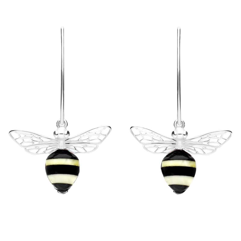 These stunning earrings are a fantastic display of Baltic Amber and Whitby Jet fashioned into the shape of this delicate bee. These dainty hook earrings have intricate wings made of sterling silver that sit delicately above the body of the bee. Supplied with a sterling silver hook fastenings. Supplied with a sterling silver hook fastening and made with the finest Whitby Jet stone, sourced directly from the north east coast of Yorkshire.