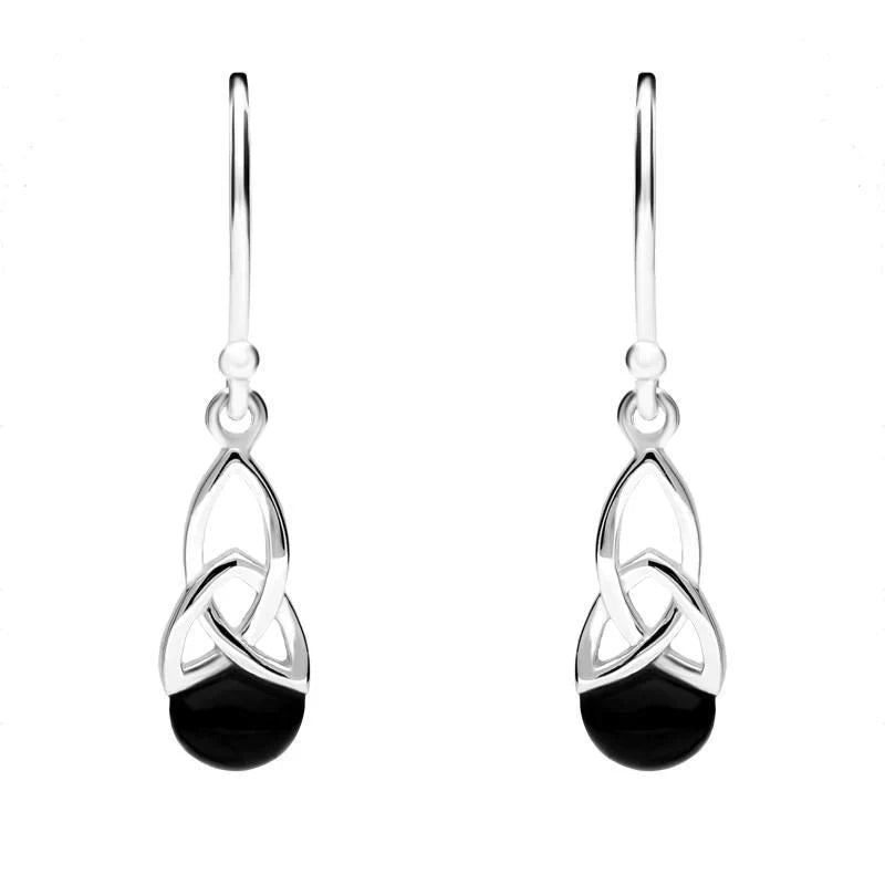 Sterling Silver Whitby Jet Celtic Twist Hook Earrings, E2318.