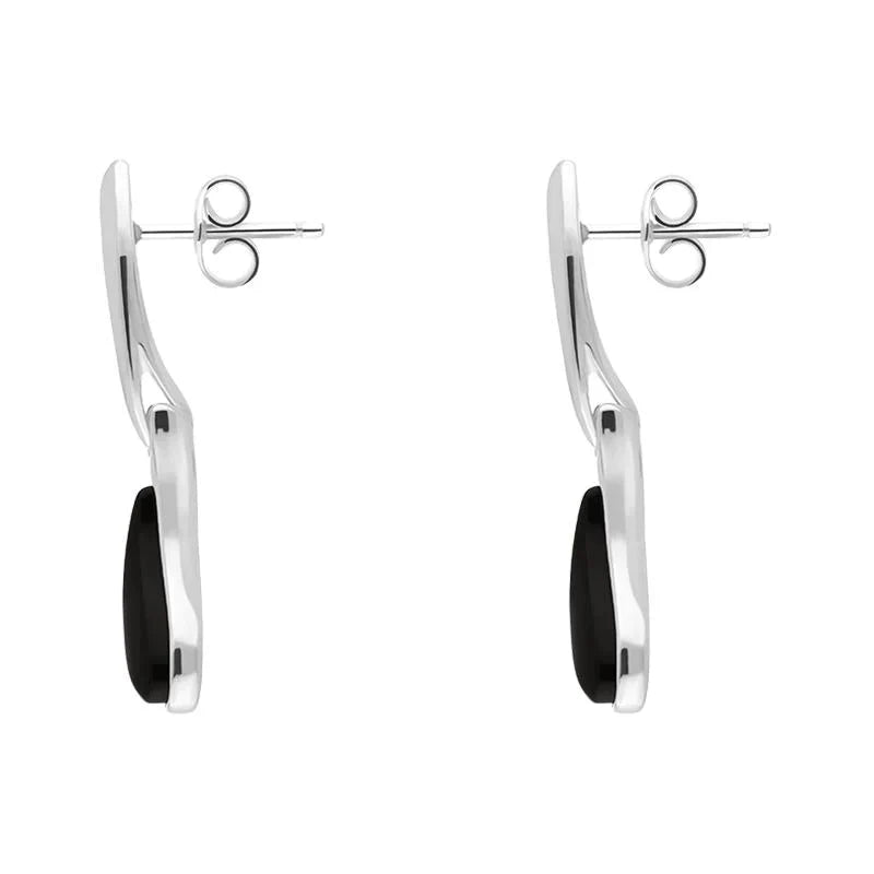 Sterling Silver Whitby Jet Curved Tear Drop Earrings, E1809