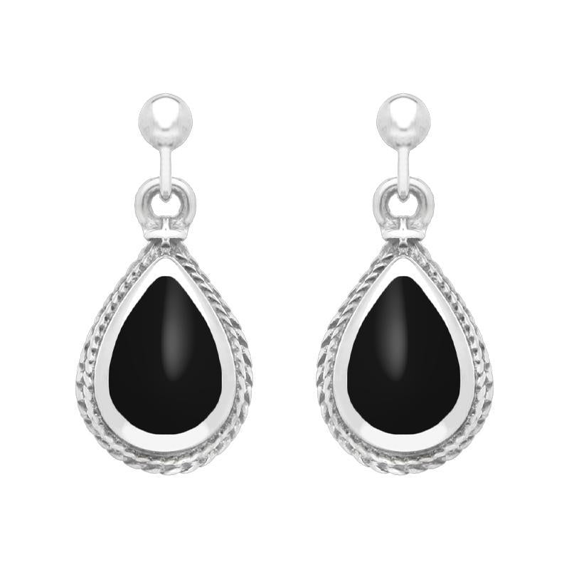 Sterling Silver Whitby Jet Pear Shaped Drop Earrings
