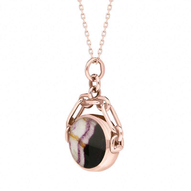 18ct Rose Gold Whitby Jet Blue John Double Sided Swivel Fob Necklace, P209.