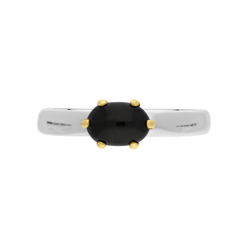 9ct Yellow Gold Sterling Silver Whitby Jet Stepping Stones 4x7mm Oval Claw Set Ring R574