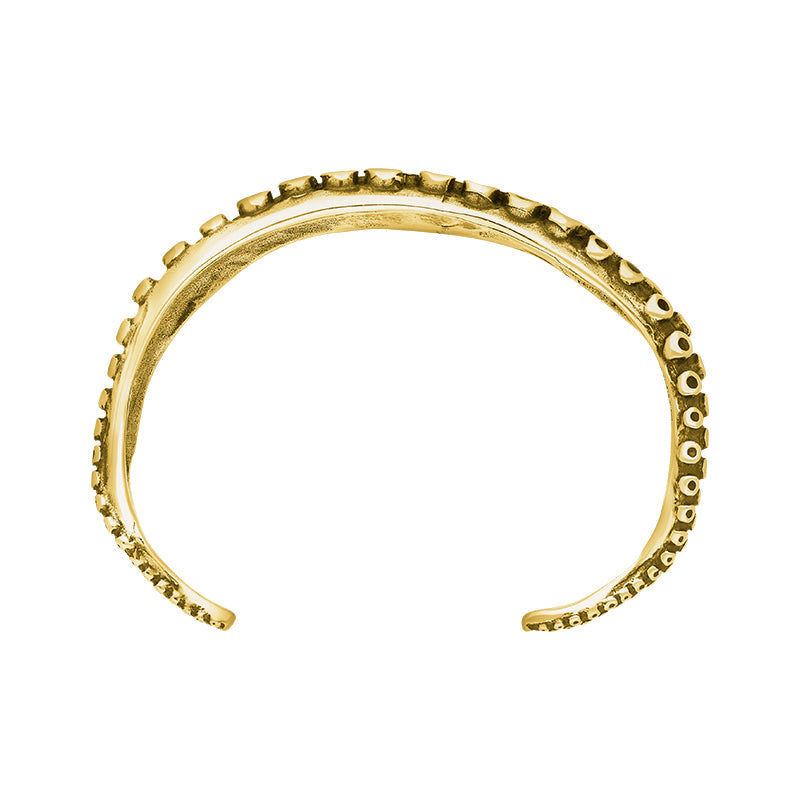 Discover our beautifully crafted Sea Life collection and add to it with this 9ct yellow gold and Whitby Jet tentacle bangle. Our items make the perfect gift and become treasured memories for years to come. This tentacle bangle contains eight pieces of Whitby Jet, set within the 9ct yellow gold sucker detail of the piece.