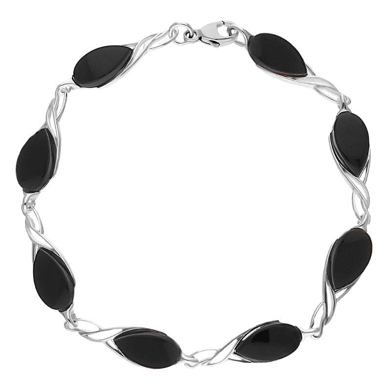 Sterling Silver Whitby Jet Celtic Eight Stone Pear Bracelet, B1004