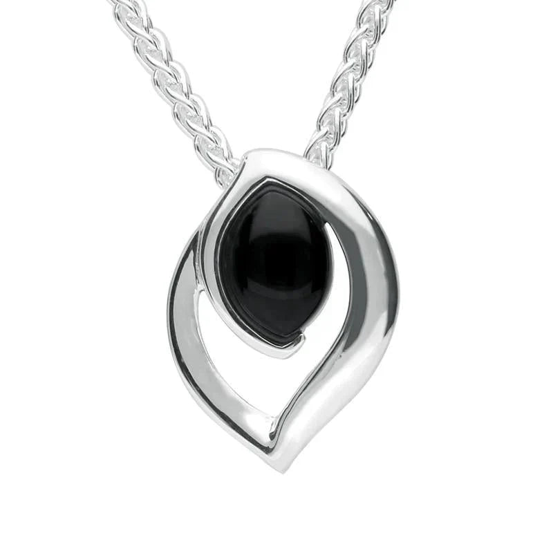 Sterling Silver Whitby Jet Marquise Flame Necklace. P2594.