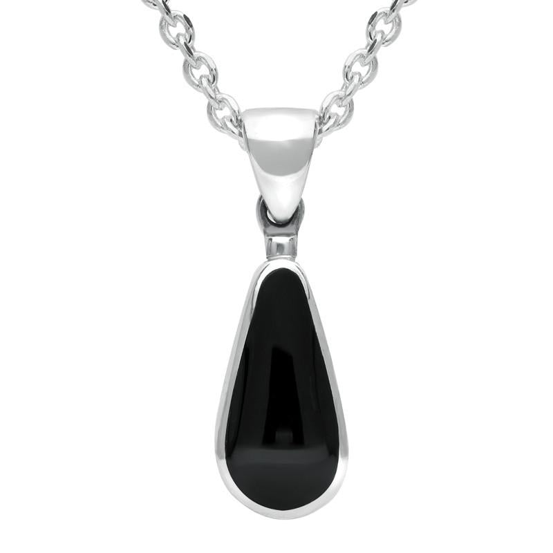 Sterling Silver Whitby Jet Small Pear Necklace. P163.
