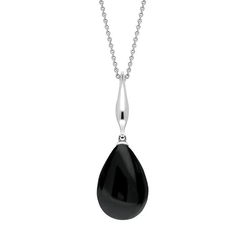 Sterling Silver Whitby Jet Tapered Top Pear Necklace, P1929.