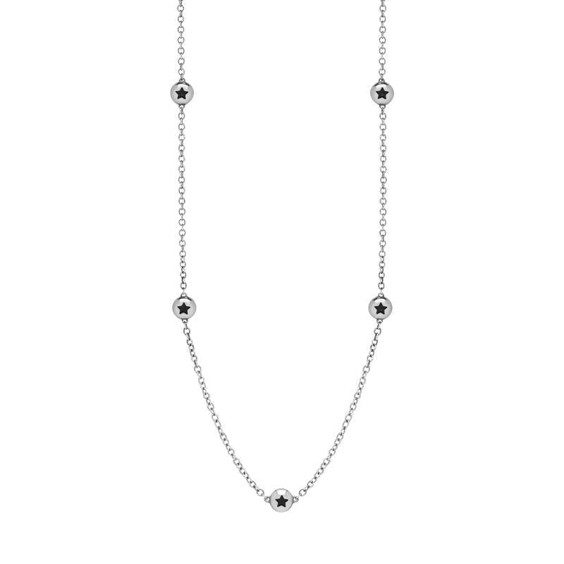 This on trend 18ct white gold chain necklace features petite discs embellished with star shaped fine Whitby Jet stones that have been sourced directly from the North East coast of Yorkshire.