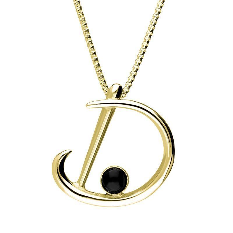 18ct Yellow Gold Whitby Jet Love Letters Initial D Necklace, P3451.