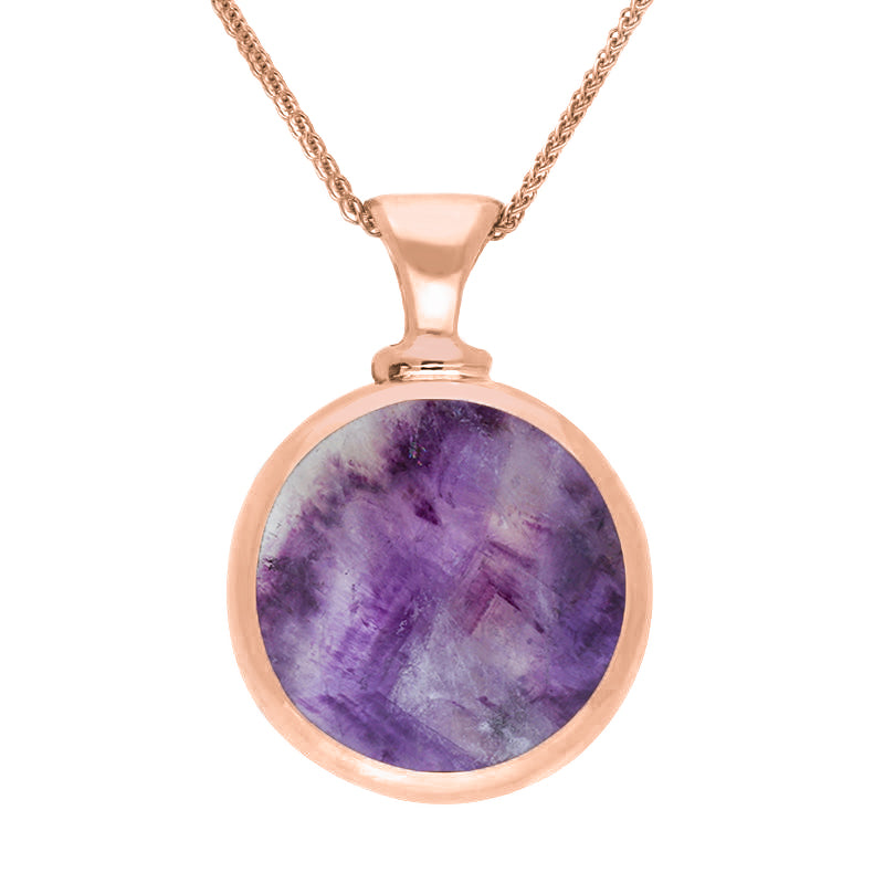 9ct Rose Gold Whitby Jet Blue John Double Sided Round Dinky Fob Necklace