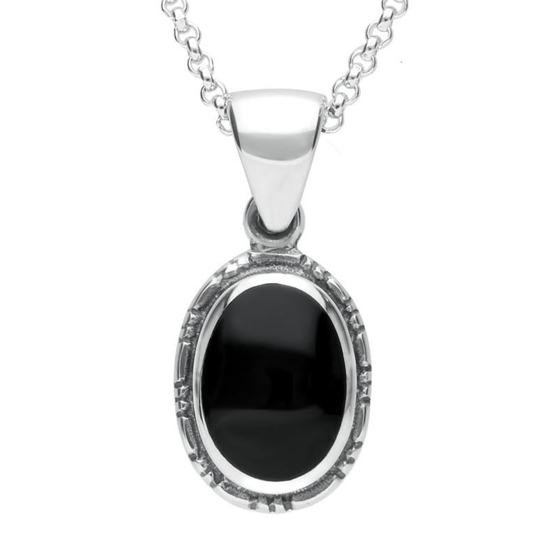 Sterling Silver Whitby Jet Oval Rope Edge Pendant
