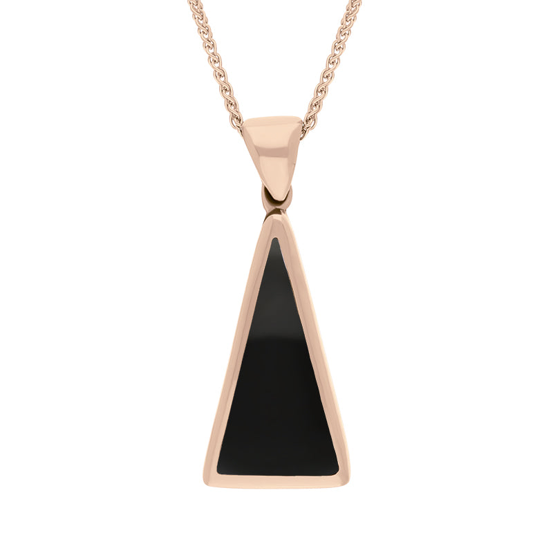 9ct Rose Gold Whitby Jet Malachite Small Double Sided Triangular Fob Necklace, P834.