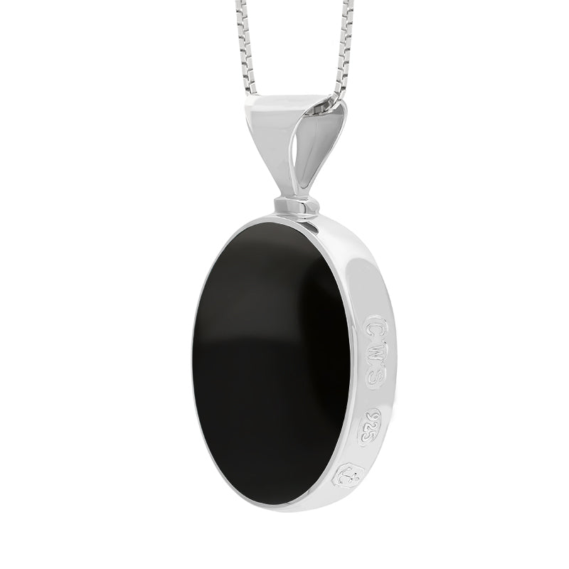 Sterling Silver Blue John Whitby Jet Hallmark Double Sided Oval Necklace, P147_FH