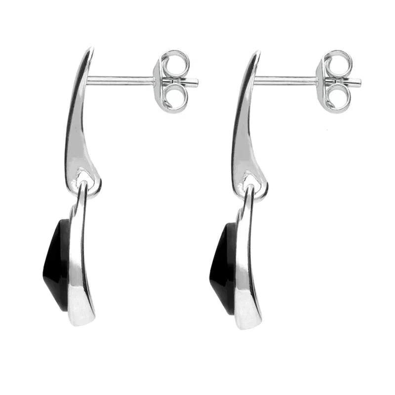 Sterling Silver Whitby Jet Plain Top Pear Drop Earrings, E1823.