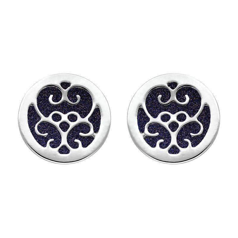 9ct White Gold Blue Goldstone Flore Filigree Stud Earrings