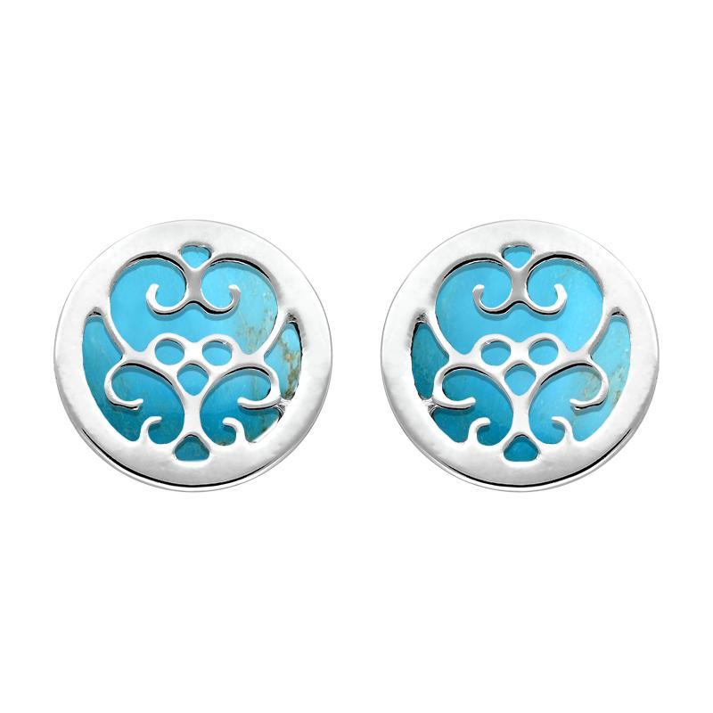 9ct White Gold Turquoise Flore Filigree Earrings, E1782