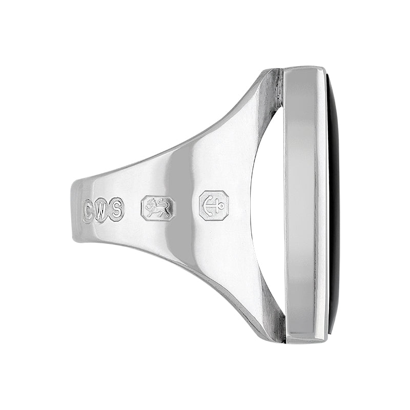 9ct White Gold Whitby Jet Hallmark Medium Oblong Ring