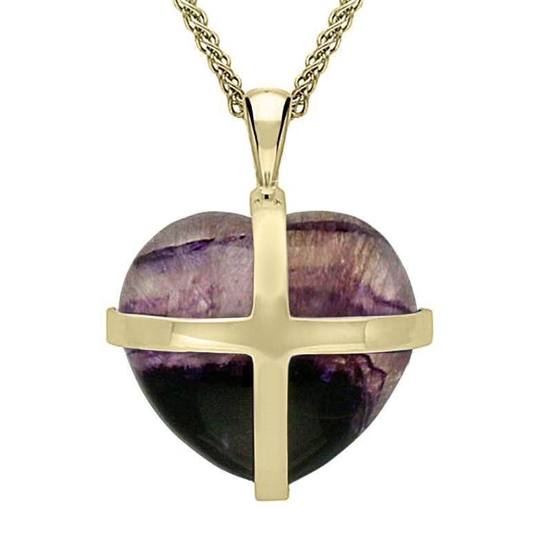 18ct Yellow Gold Blue John Large Cross Heart Necklace, P1542.