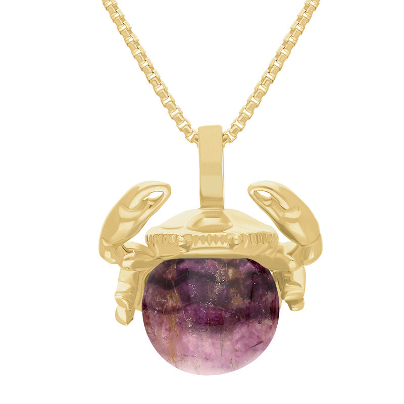 18ct Yellow Gold Blue John Zodiac Cancer 8mm Bead Pendant, P3625.