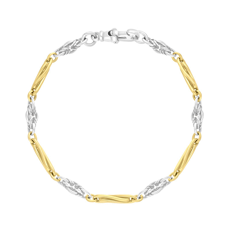 18ct Yellow Gold Sterling Silver Twist Byzantine Handmade Bracelet C118BR
