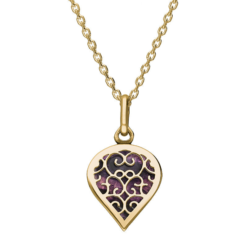 9ct Yellow Gold Blue John Flore Filigree Small Heart Necklace. P3629.