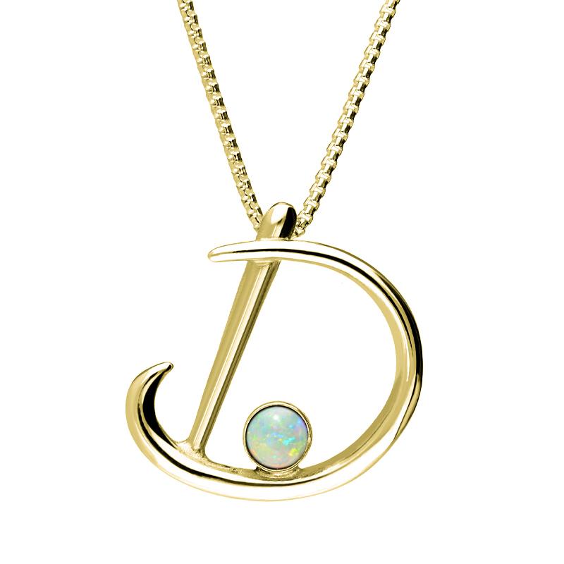 9ct Yellow Gold Opal Love Letters Initial D Necklace, P3451.