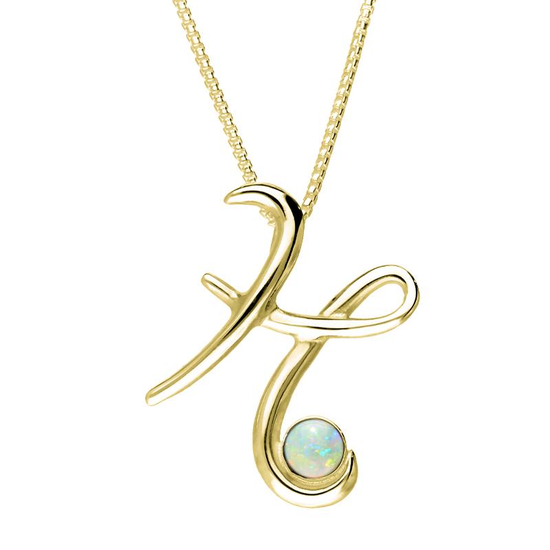 9ct Yellow Gold Opal Love Letters Initial H Necklace, P3455.