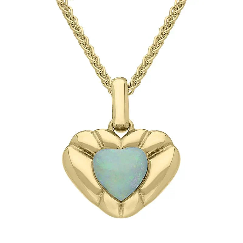 9ct Yellow Gold Opal Stone in Ridged Heart Necklace