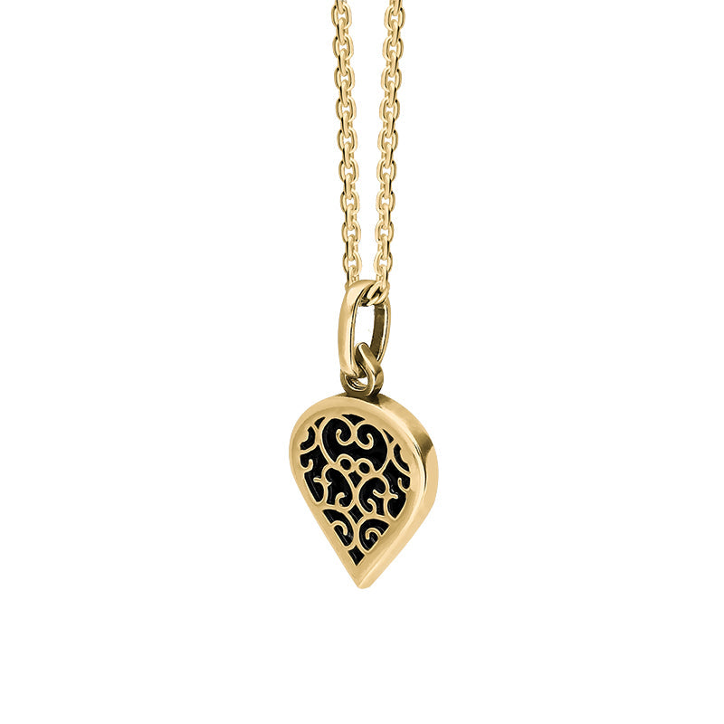 9ct Yellow Gold Whitby Jet Flore Filigree Small Heart Necklace. P3629.