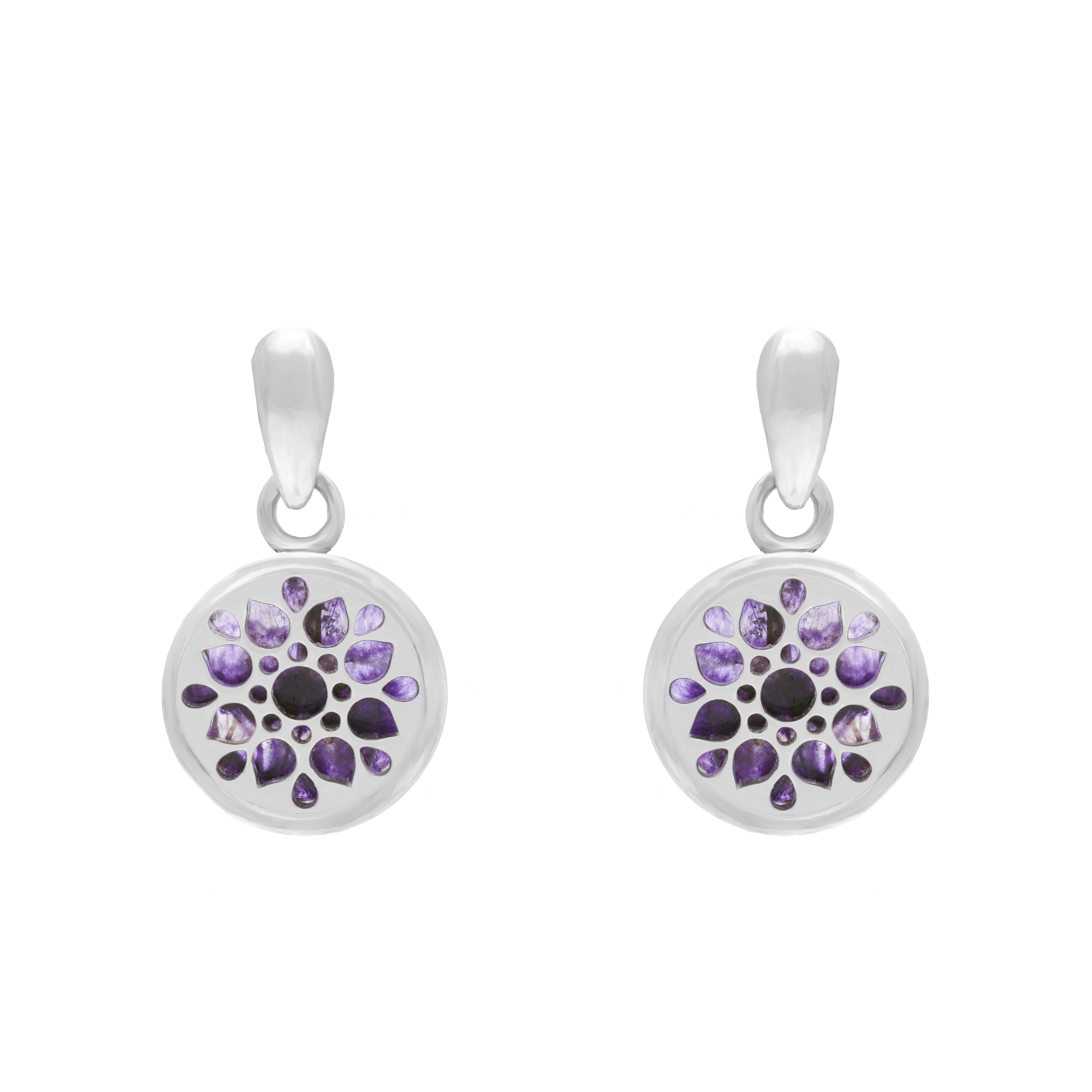 Sterling Silver 10mm Blue John Flower Burst Chatsworth Décor Round Drop Earrings