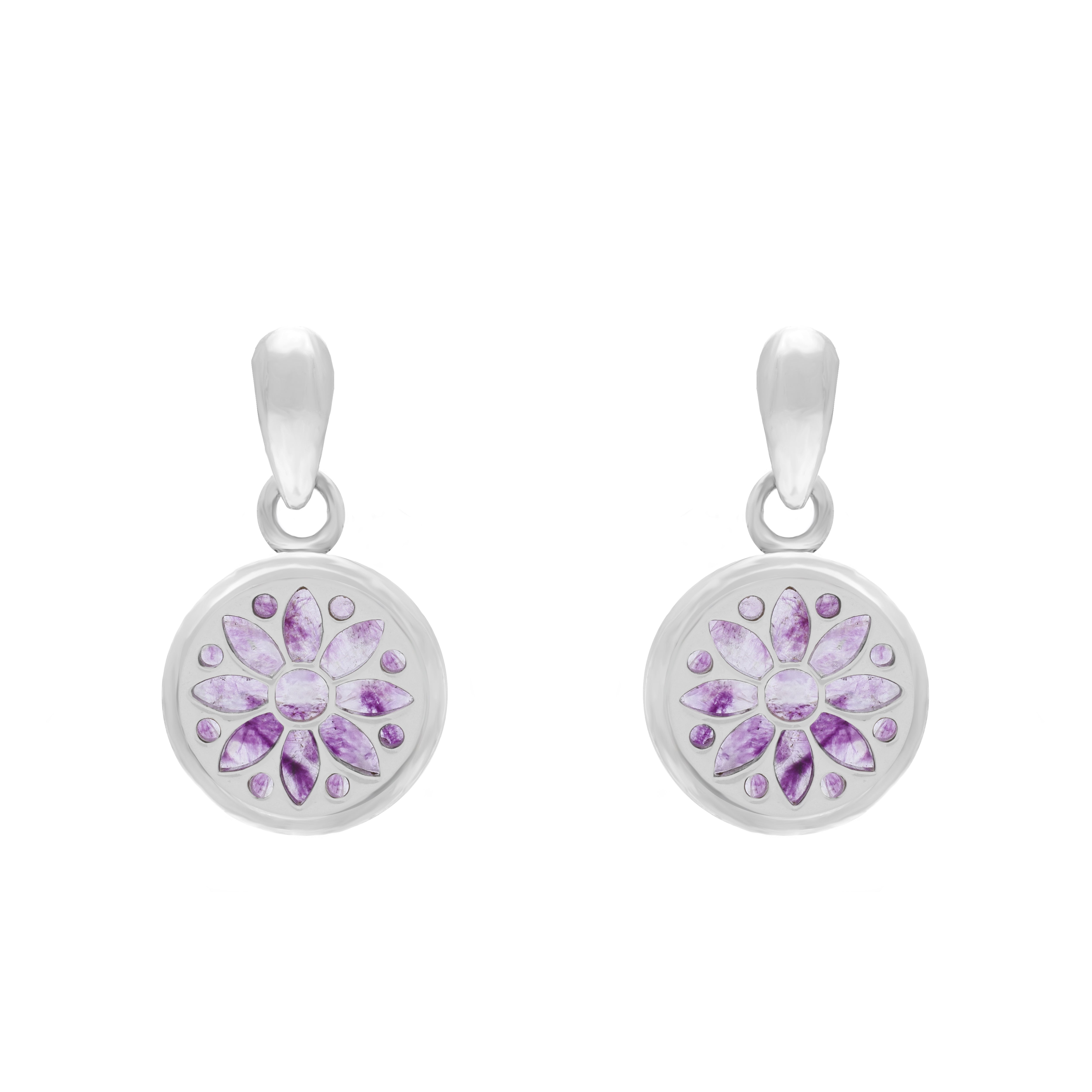 Click here to be notified by when Sterling Silver 10mm Blue John Sunflower Chatsworth Décor Round Drop Earrings becomes available.