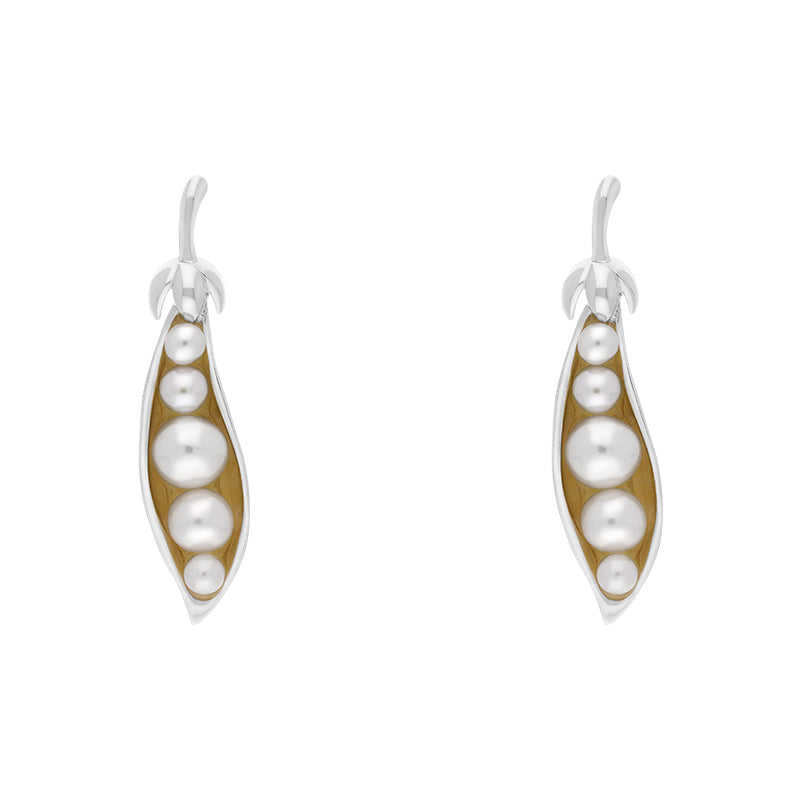 These stunning sterling silver earrings feature tiny freshwater pearls representing peas in a pod. The earrings have secure post and butterfly fitments. A timeless design that will make the perfect addition to any jewellery or garden lovers collection.